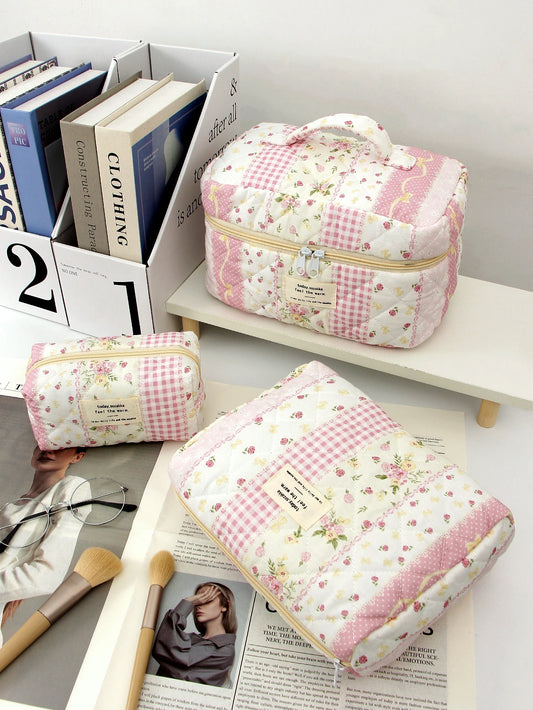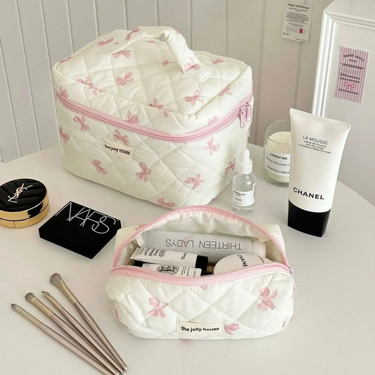 Pink Quilted Makeup Bag, Travel Essential Makeup Bag