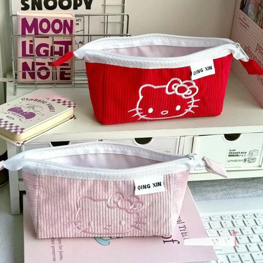 Cute Hello Kitty Corduroy Large Capacity Stationery Storage Bag