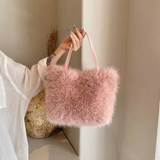 Fluffy Totes Soft Plush Underarm Bag Solid Color Purse Autumn Winter Handbag