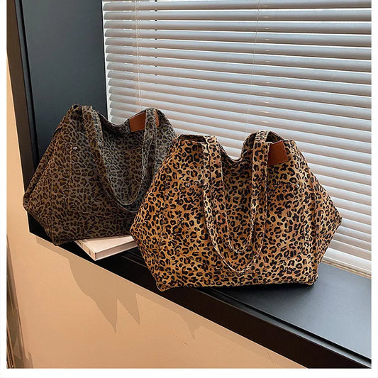 Leopard Pattern Tote Bag Vintage Canvas Shoulder Bag