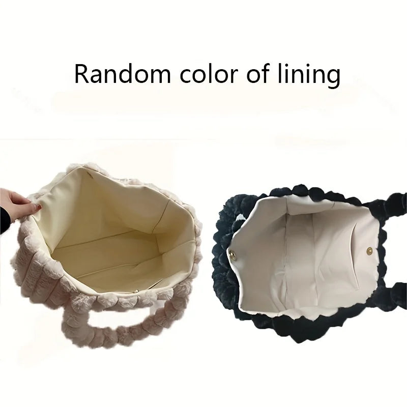Large Capacity Plush Tote Bag, Stiped Faux Fur Shoulder Bag, Women's Soft Fluffy Handbag