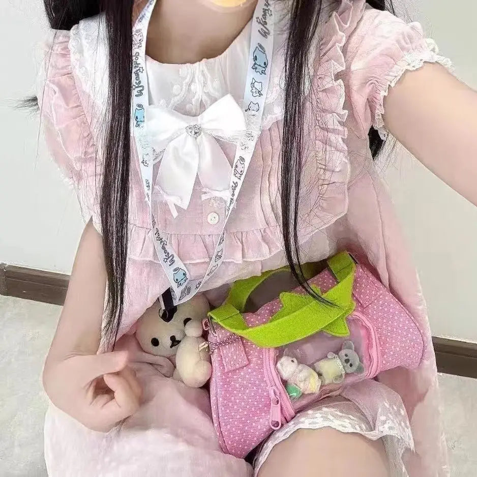 Sweet Cute Strawberry Pink Polka Dot Large Capacity Shoulder Bags