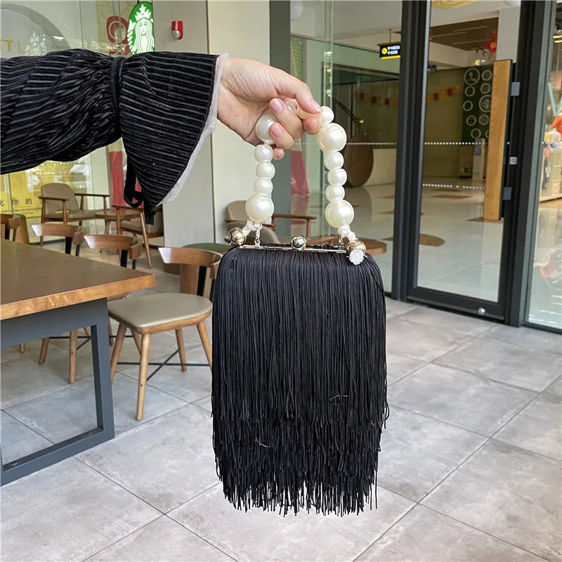 Tassel Small Square Bags Pearl Chain Handbag Bag
