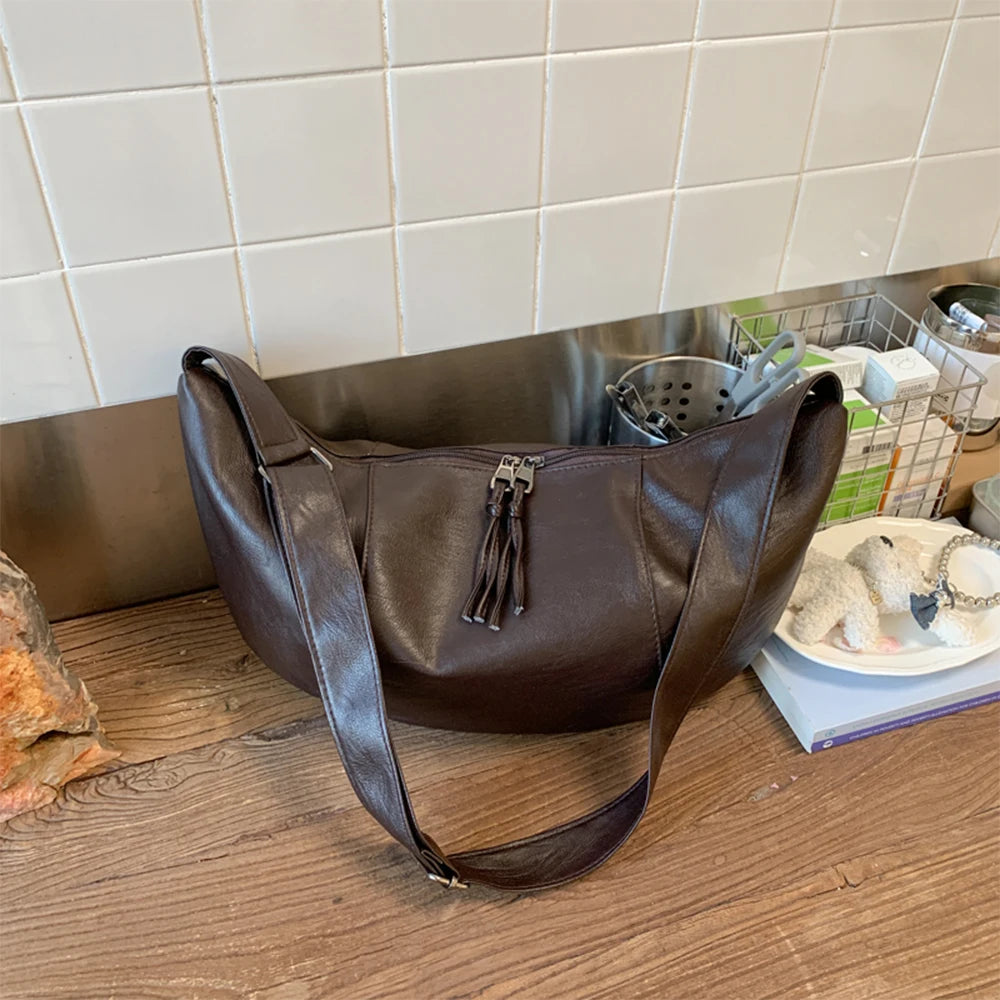 Women's Large Capacity Autumn and Winter Versatile Wide Strap Single Shoulder Crossbody This versatile crossbody bag combines practical design with seasonal style. The wide strap distributes weight evenly across your shoulder, reducing strain during extended wear. Large capacity accommodates daily essentials—wallet, phone, keys, and more—without compromising on elegance. The single-shoulder configuration offers hands-free convenience for shopping, commuting, or travel. Durable construction withstands autumn and winter conditions while maintaining a polished appearance. Perfect for transitioning between casual outings and professional settings, this bag delivers both functionality and refined aesthetics for the modern woman.