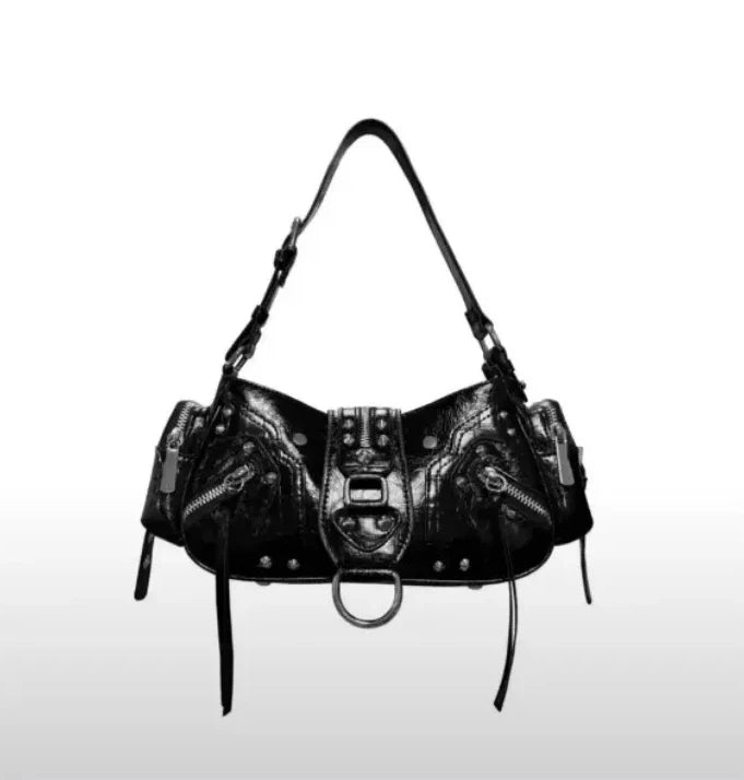 This statement-making handbag channels Y2K gothic aesthetics with its bold studded and rivet detailing. Crafted for those who embrace vintage punk style, it combines edgy hardware accents with functional design. The structured silhouette offers everyday versatility while the metallic embellishments deliver unmistakable attitude. Perfect for elevating casual outfits or completing a bold evening look, this piece bridges nostalgic fashion with contemporary edge. An essential accessory for collectors of alternative and vintage-inspired pieces.