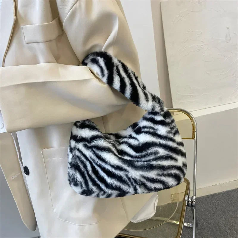 Y2k Korean Plush Retro Leopard Print Bags for Women